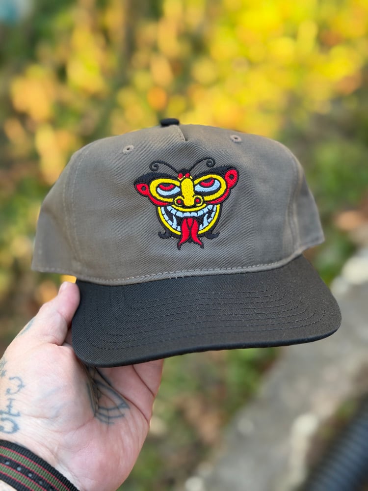 Lightweight, mid-profile five panel cap. 100% cotton. 2 tone Walnut/Black. Embroidered on front and back. ALL SALES FINAL.